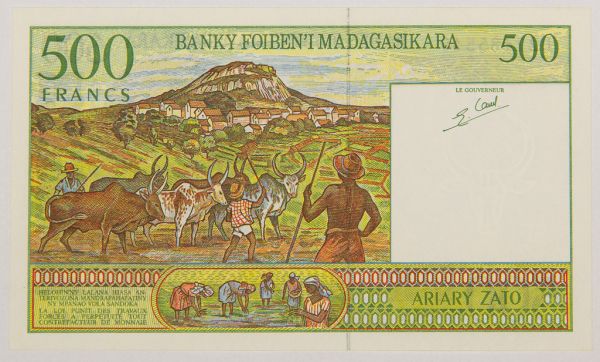 • Numismática, Madagascar. Cédula de 500 Francos 1995 P-75b FE