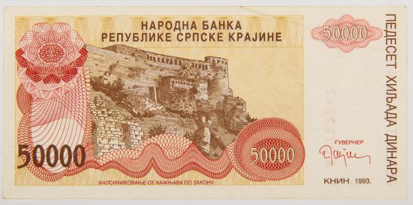 • Numismática, CROATIA. Uma Cédula 50000 Dinara 1993 Flor de Estampa