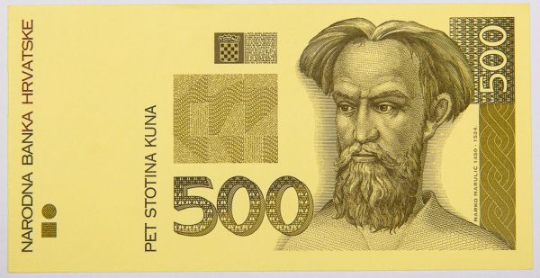 • Numismática, CROATIA. Uma Cédula 500 Dinara Uniface Flor de Estampa