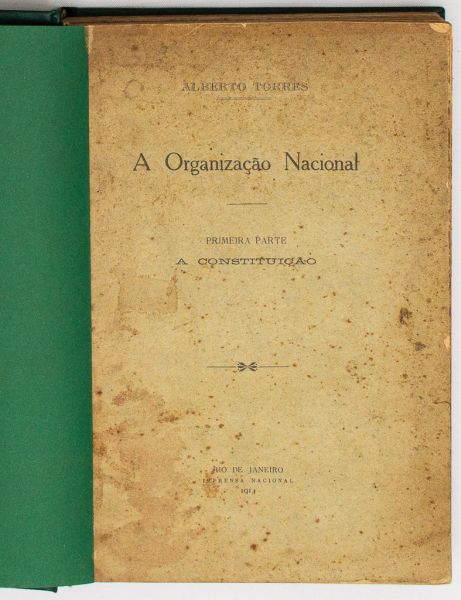 • Livro: TORRES, Alberto. `A Organização Nacional`, Primeira Parte: A Constituição, 1ª edição. Rio de Janeiro: Imprensa Nacional, 1914; 384p. Enc. com as capas.