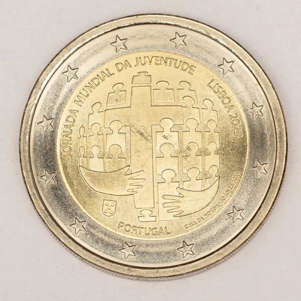 • Numismática, Portugal. 2 Euros Comemorativo Jornada Mundial da Juventude 2023. Flor de Cunho