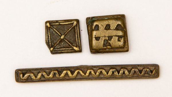 • Numismática. 3 peças pesos para ouro. Origem África. Raríssimas peças provenientes de colecionador alemão falecido. Origem Ashanti. São os mais conhecidos dentre os povos Akan de Gana. Serviam para aferir, trocas e compras. Maior comprimento. 52mm e 12g