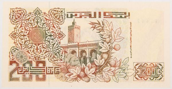• Numismática, Argélia. Cédula de 200 Dinares 1992 P-138a.2 FE