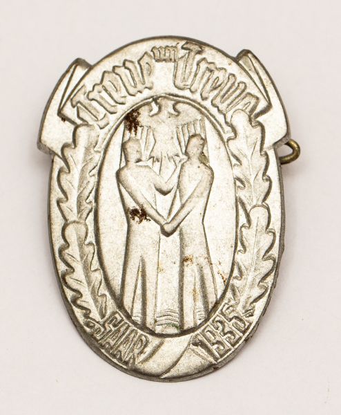 • Militaria, Alemanha II Guerra. Proveniente de importante coleção adquirida na Bélgica - Feira de Militaria de Ciney. O partido nazista promoveu uma grande campanha de arrecadação de fundos antes e durante a guerra, com a venda de itens colecionáveis, pins, pendentes, tinnies, badges etc. Sempre colecionáveis voltada a novas compras. Oportunidade para colecionador avançado. **Item não promove ou glorifica violência ou intolerância racial. Está à venda apenas para fins de preservação da memória histórica. A Organização do leilão não faz apologia a quaisquer movimentos políticos ou ideológicos, e repudia qualquer ideologia de cunho racista. Distintivo do Plebiscito do Sarre 1935. 13/01 - Reunificação da Bacia do Sarre com a Alemanha.