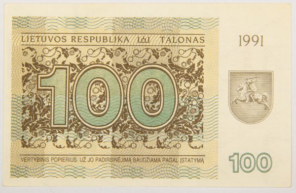 • Numismática, LIETUVA. Uma Cédula 100 Talonas 1991 Flor de Estampa
