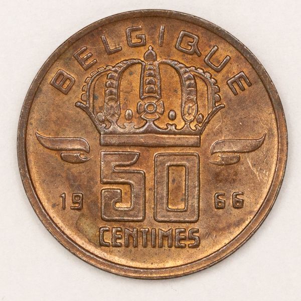 • Numismática, Bélgica. Moeda de 50 centavos ano 1966. Bronze 19mm. Tiragem 11.040.000. KMH148.1 Raríssima.