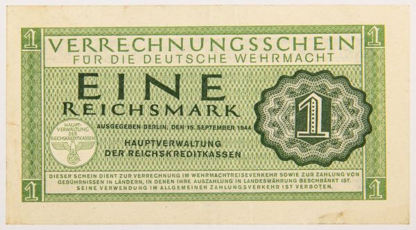 • Numismática, Alemanha. 1 Reichsmark 1944 para o Exército Alemão.
