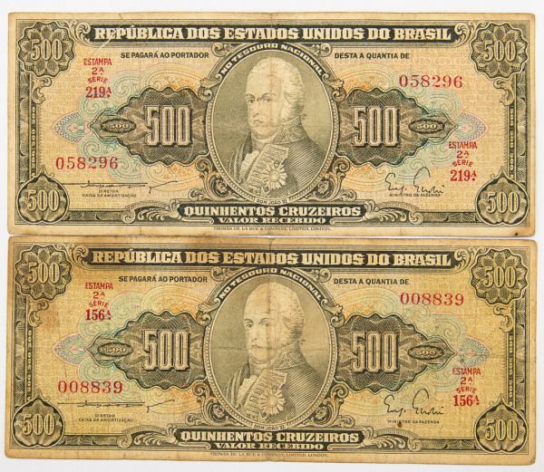 • Numismática Brasil - 2 cédulas 500 Cruzeiros C-100