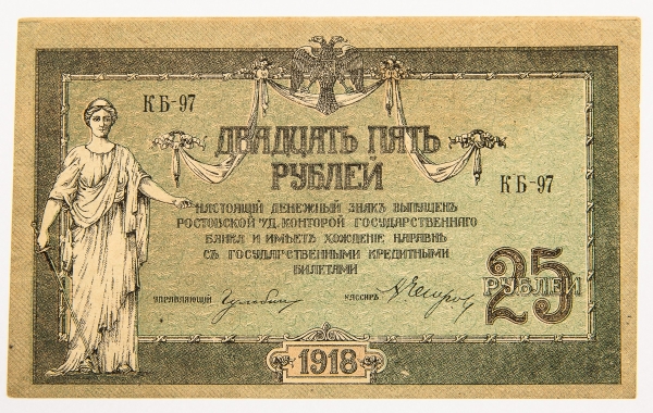 • Numismática, Rússia. Cédula de 25 Rublos 1918 S-412b FE