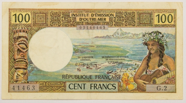 • Numismática, Papeete. Cem francos,