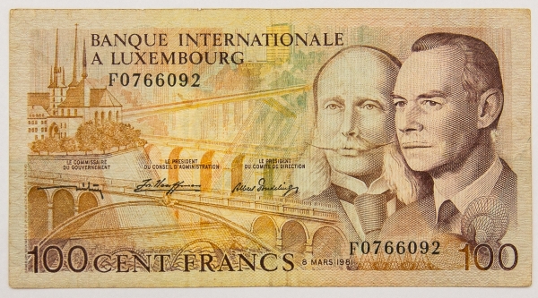 • Numismática, Luxemburgo. 100 francos.