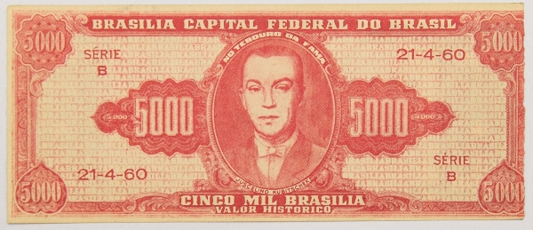 • Numismática, Brasil. 5000. Brasilia. 1960. Borda aparada.