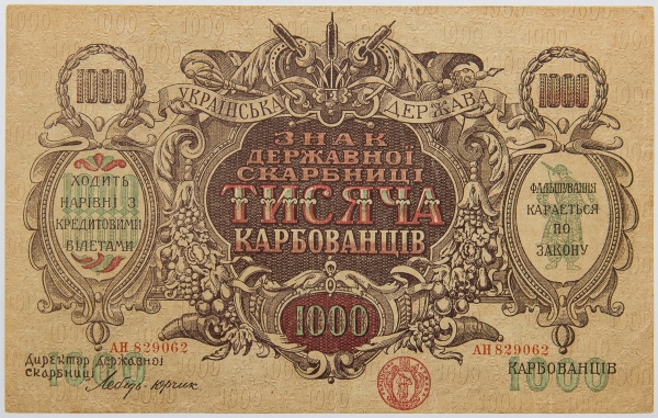 • Numismática, Ucrânia. 1000 karbonates. 1918. 190x120mm. Alta cotação.