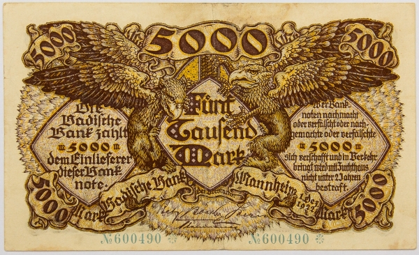 • Numismática, Alemanha. Magnífica cédula. Inflacionária, raríssima nesse modelo com 110x185mm. 5000 marcos.