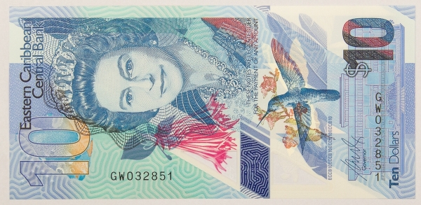 • Numismática, Caribe. 10 dolares. Pol[imero. Linda.