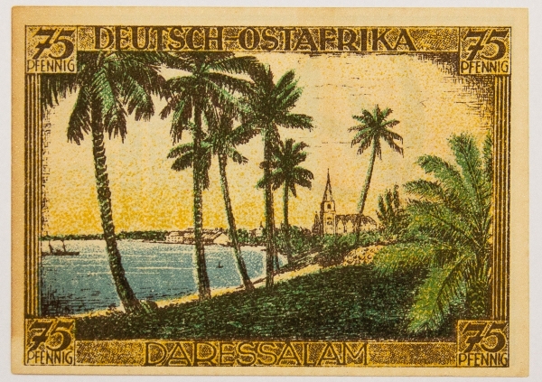 • Numismática, África colonial alemã. Cédula centenária com crescente procura e valor. Marcas do tempo. Daressalm