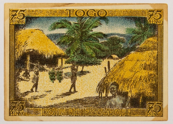 • Numismática, África colonial alemã. Cédula centenária com crescente procura e valor. Marcas do tempo. Togo.