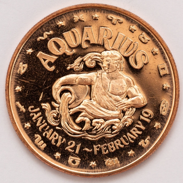 • Numismática, USA.  Onça de cobre. Grande procura pela temárica. Signo Aquário.
