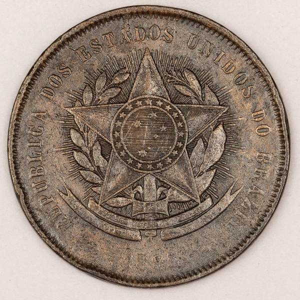 • Numismática, Brasil. Bronze. 20 réis. 1889.