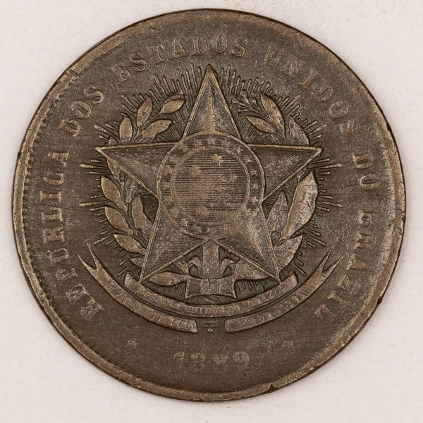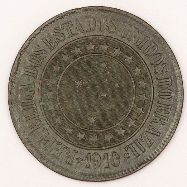 • Numismática, Brasil. Bronze. 20 réis. 1910.