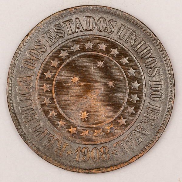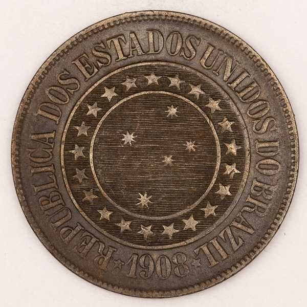• Numismática, Brasil. Bronze. 20 réis. 1908