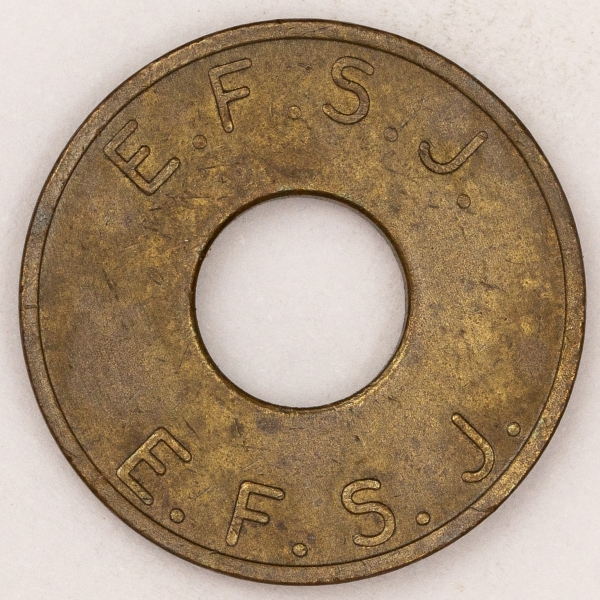 • Numismática, Brasil. Raríssima ficha da E.F.S.J - Estrada de ferro Santos - Jundiaí. 22mm. Alta cotação.