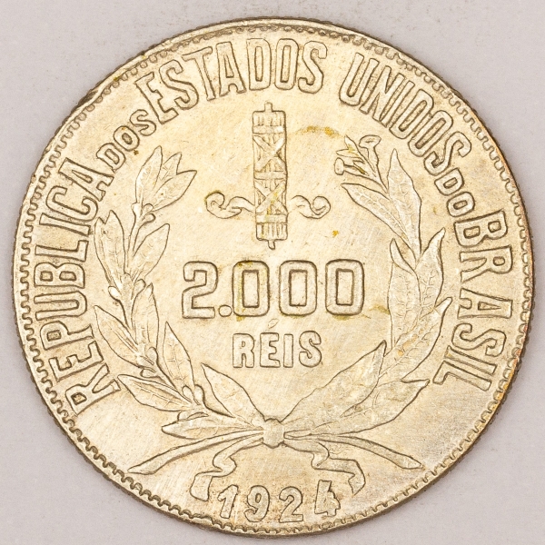 • Numismática, Brasil. 2000 réis. 1924. Perfeita. Prata.
