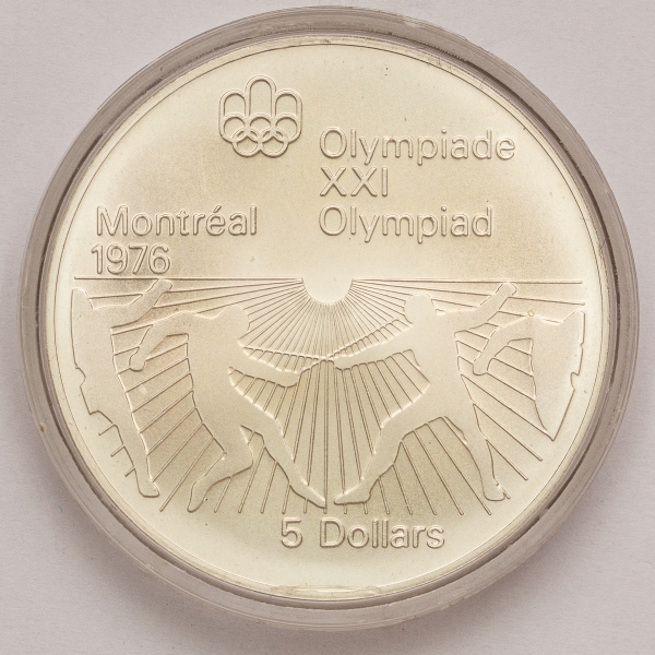 • Numismática, Canadá. 5 dólares. 1976. Encapsulada. Prata. 925. 24,3g.