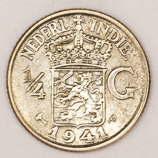 • Numismática, Índia Holandesa. 1/4G. 1941. Prata.