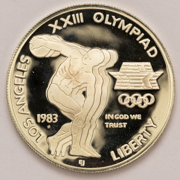 • Numismática, USA. Dólar de prata 1983 S. Encapsulado. Olímpia das KM209. 26,73g. Prata 900.