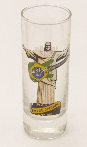 • Colecionismo - Raro Shot Glass do extinto  Hard Rock Café - Rio de Janeiro - Com Figura do Cristo Redentor