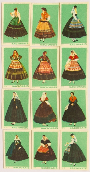• Colecionismo - Série de 12 figurinhas com tema deTrajes Típicos Portugueses - Utilizadas nas caixas de fósforos portugueses NACIONAIS