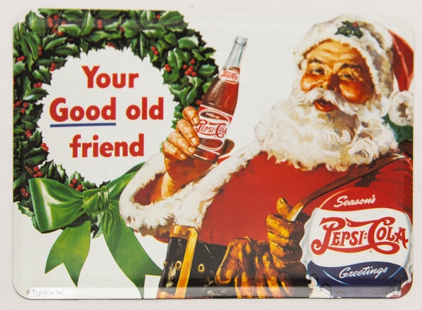 • Colecionismo - Mini placa metálica com propaganda da PEPSI COLA - Tema Noel / Natal - Origem Berlim - Alemanha - 14x10cm
