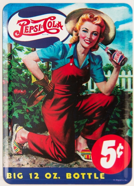 • Colecionismo - Mini placa metálica com propaganda da PEPSI COLA - Tema garota do campo - Origem Berlim - Alemanha - 14x10cm