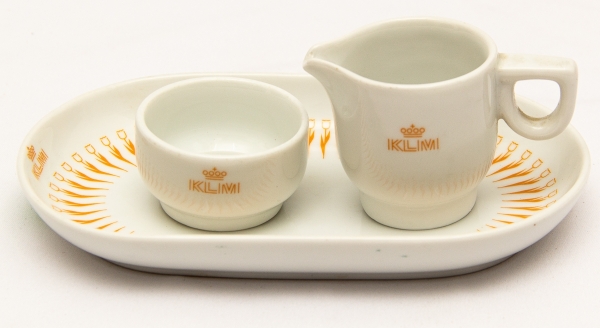 • Colecionismo - Lindo conjunto de bandeja de vidro e molheiras - Cia Aérea Alemã KLM - Royal Dutch Airlines - Uso restrito primeira classe