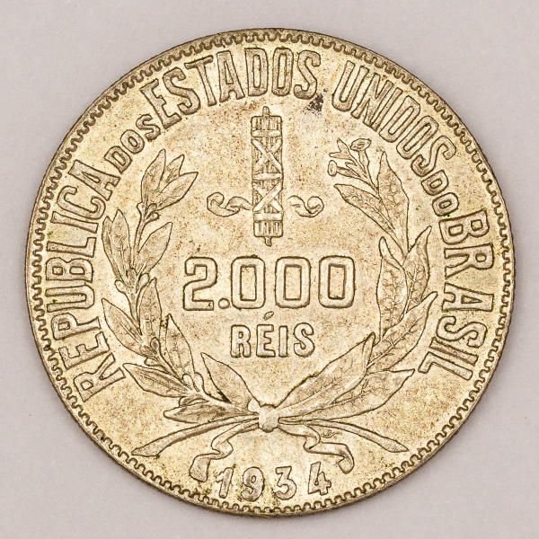 • Numismática, Brasil. 2000 réis em prata. Perfeita 1934
