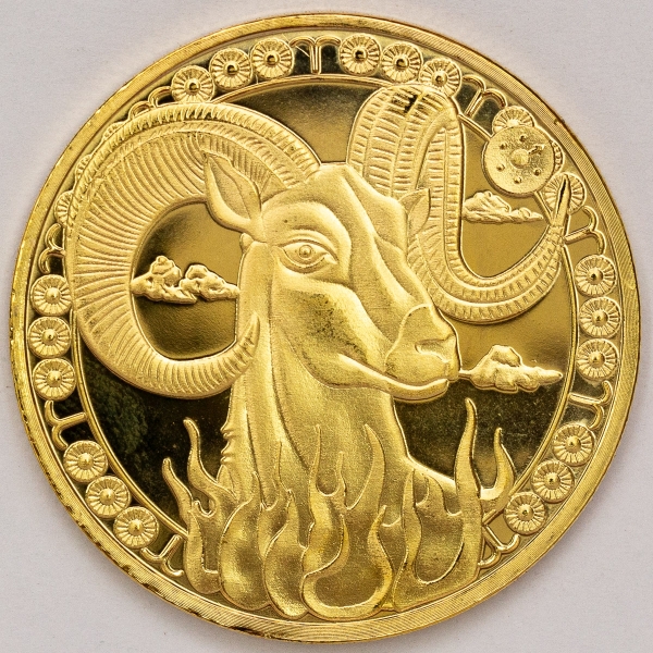 • Numismática, Moeda comemorativa do zodíaco. (Signo de áries). Folheada a ouro 24k. 40mm.