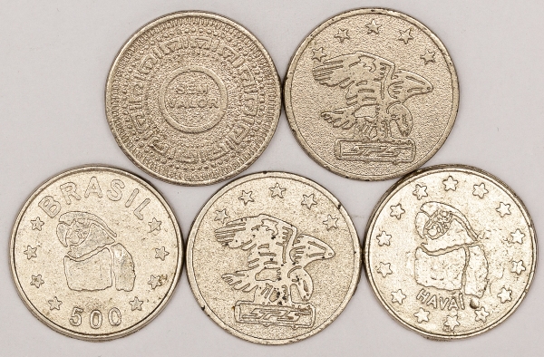 • Lote com 5 antigas fichas Amusement Only for SPS. Originais.