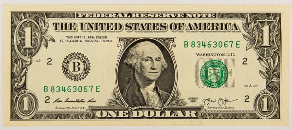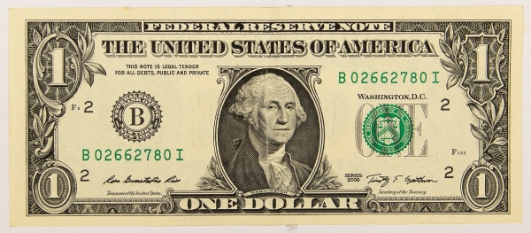 • Numismática, USA. Cédula de 1 dolar americano 2013. New York, New York.