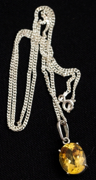 • Joia em prata 925 contrastada e citrino. Cordão com 44cm aberto. Peso total 5,07g. Nova.