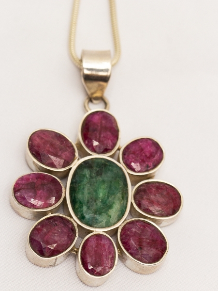 • Joia em prata 925 contrastada e pedras brasileiras. Cordão com 60 cm aberto. Peso total 31,7g. Nova. Exuberante peça.