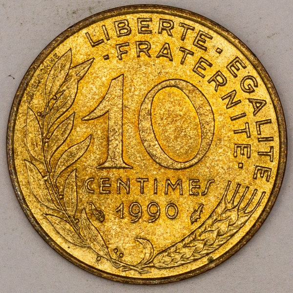 • Numismática, FRANCE. Uma Moeda 10 Centimes 1990