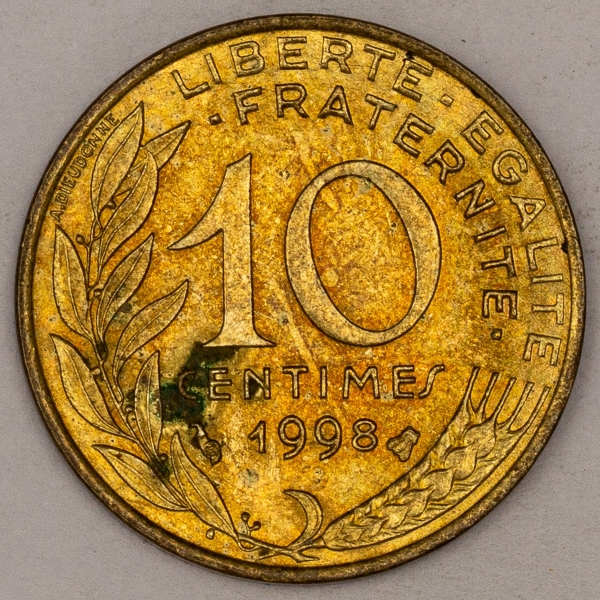 • Numismática, FRANCE. Uma Moeda 10 Centimes 1998