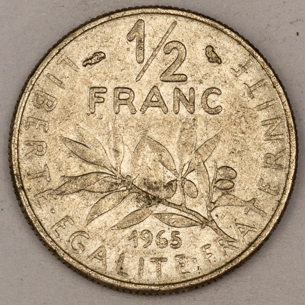 • Numismática, FRANCE. Uma Moeda 1/2 Franc 1965