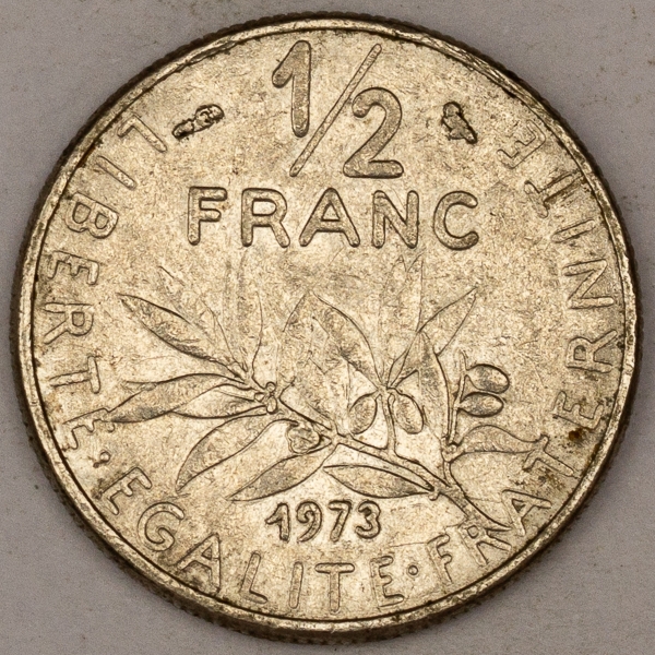 • Numismática, FRANCE. Uma Moeda 1/2 Franc 1973