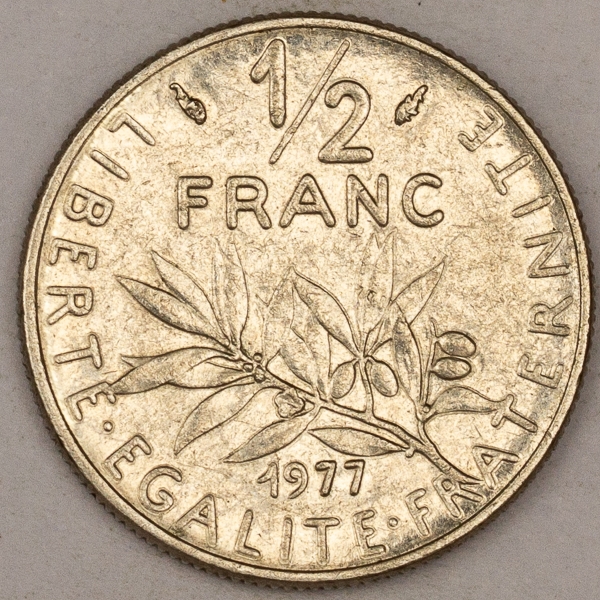 • Numismática, FRANCE. Uma Moeda 1/2 Franc 1977