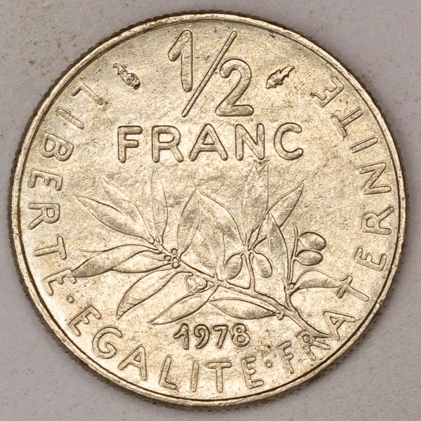 • Numismática, FRANCE. Uma Moeda 1/2 Franc 1978