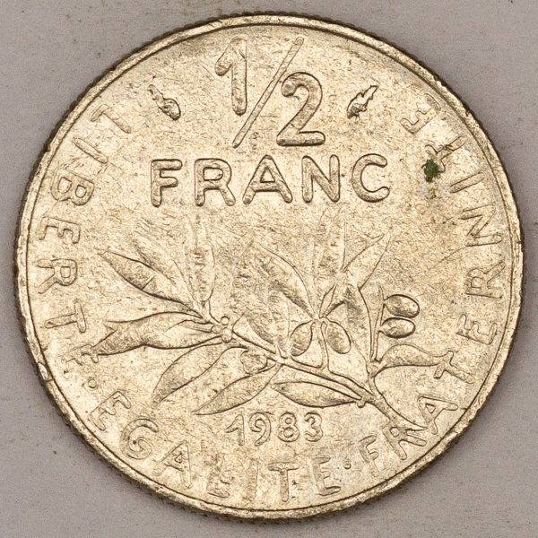 • Numismática, FRANCE. Uma Moeda 1/2 Franc 1983