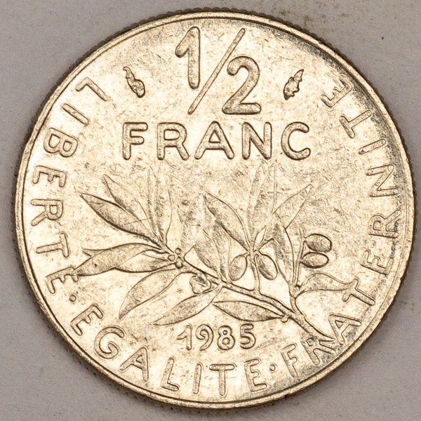 • Numismática, FRANCE. Uma Moeda 1/2 Franc 1985