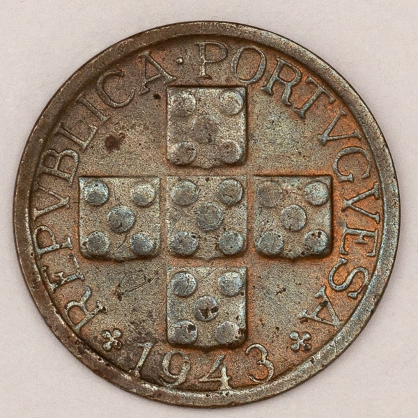 • Numismática, PORTUGAL. Uma Moeda X Centavos 1943